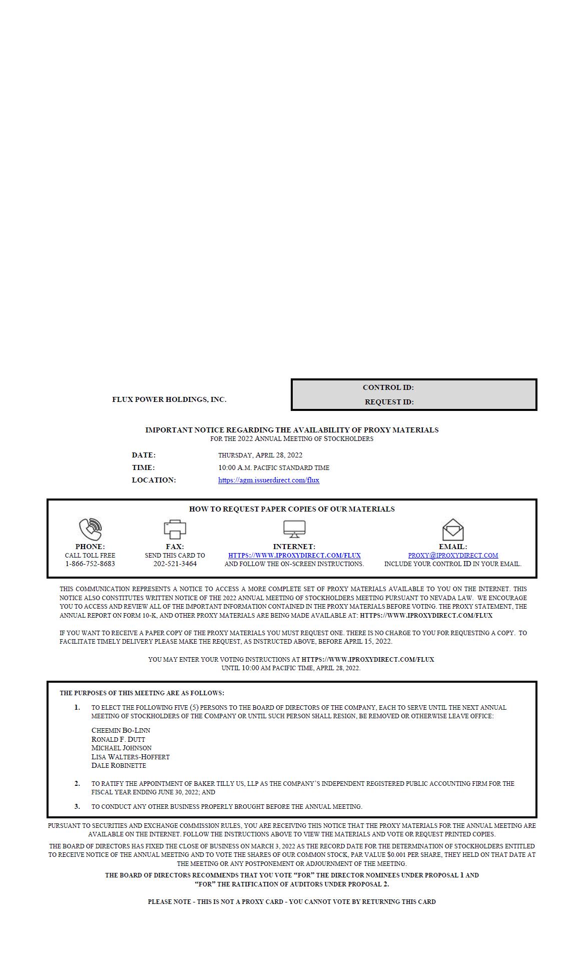 FLUX POWER HOLDINGS, INC.